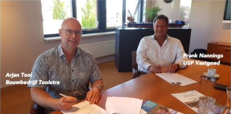 Jan Kuin van aannemingsbedrijf Kuin, Arjan Tool van Bouwbedrijf Toolstra en Frank Nannings van USP Vastgoed hebben onlangs de aannemingscontracten ondertekend.